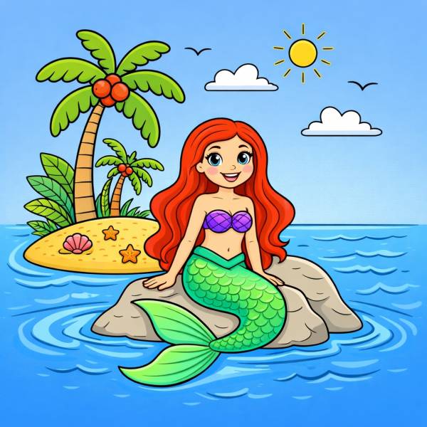 stampa gratis il disegno "Sirena su Isola Deserta"