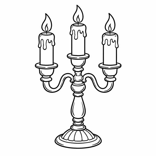 Il disegno rappresenta un candelabro con tre Candele. Il disegno è in bianco e nero con bordi ideale da colorare